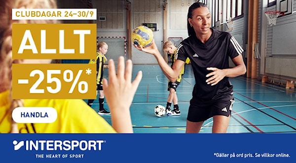 Mellan den 24/9–30/9 har vår samarbetspartner INTERSPORT 25% rabatt på allt i butik och på intersport.se, ett perfekt läge att köpa det ni behöver för höstens alla aktiva dagar. Gäller för dig som är eller blir medlem i Club INTERSPORT. Glöm ej att logga in för att ta del av cluberbjudanden online.