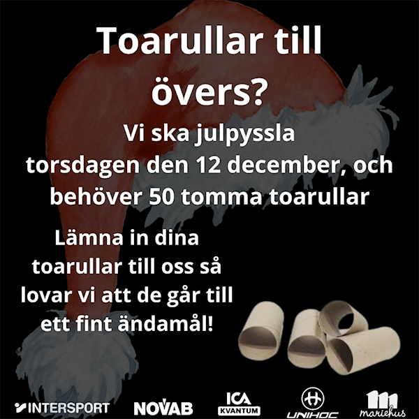Vi ska julpyssla den 12 december och behöver 50 tomma toarullar.